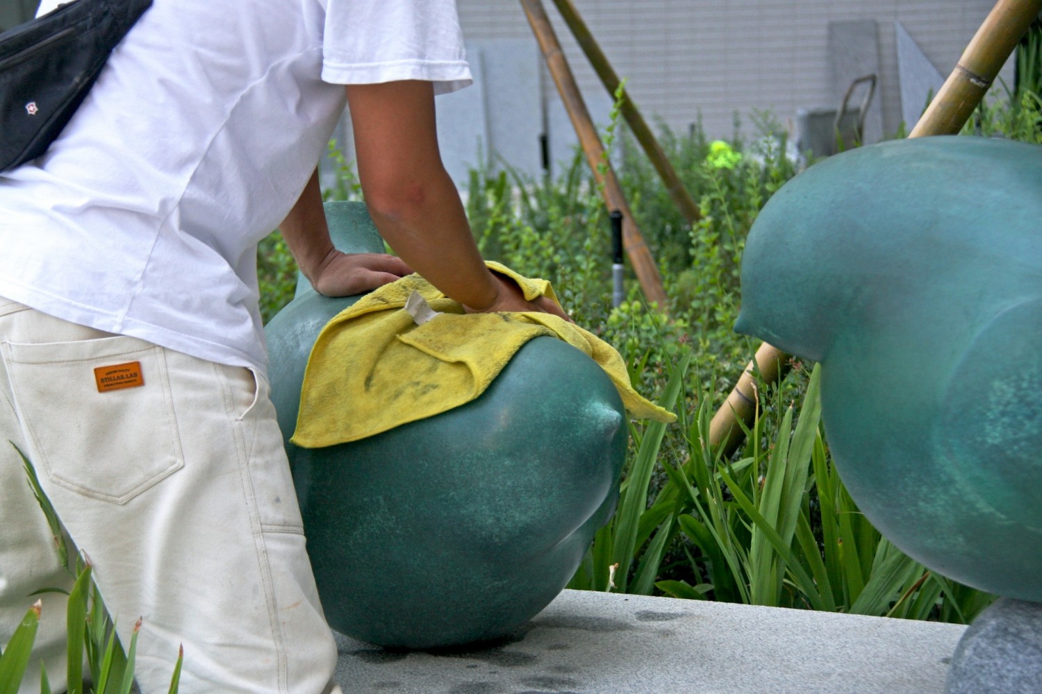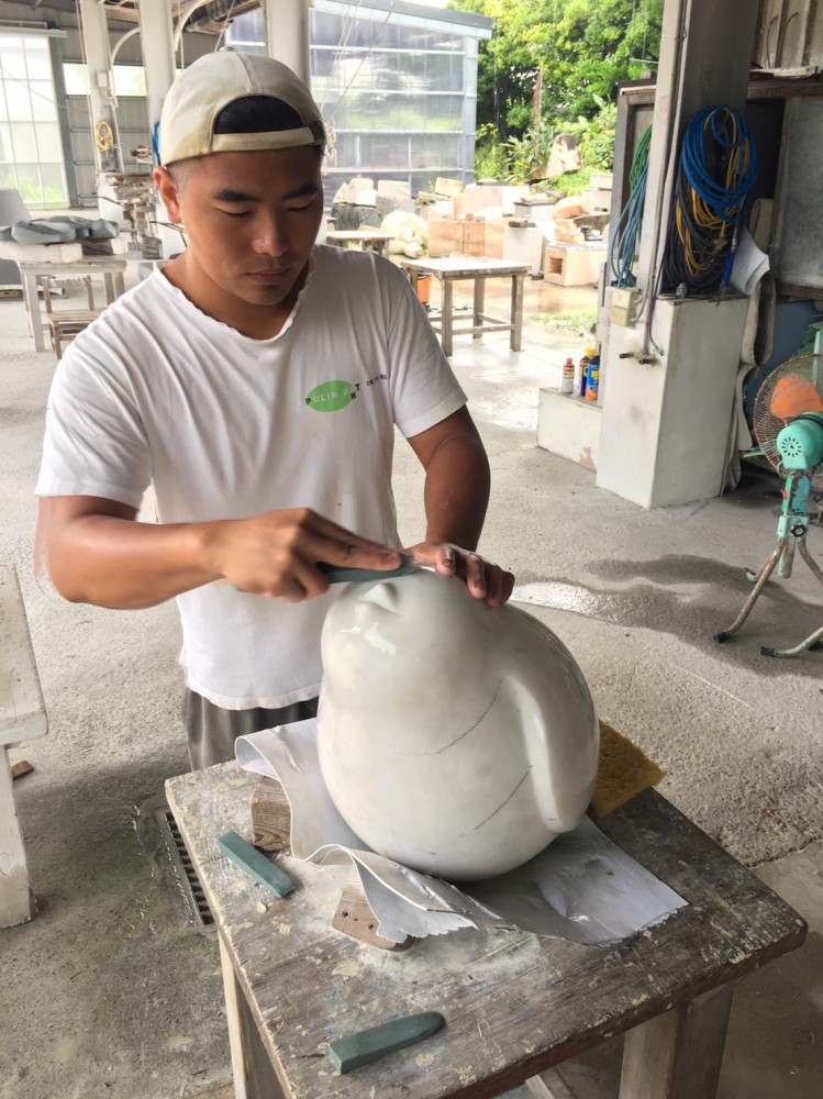 工作人員將藝術(shù)品上油保護(hù),準(zhǔn)備迎接即將一起生活的家人們。