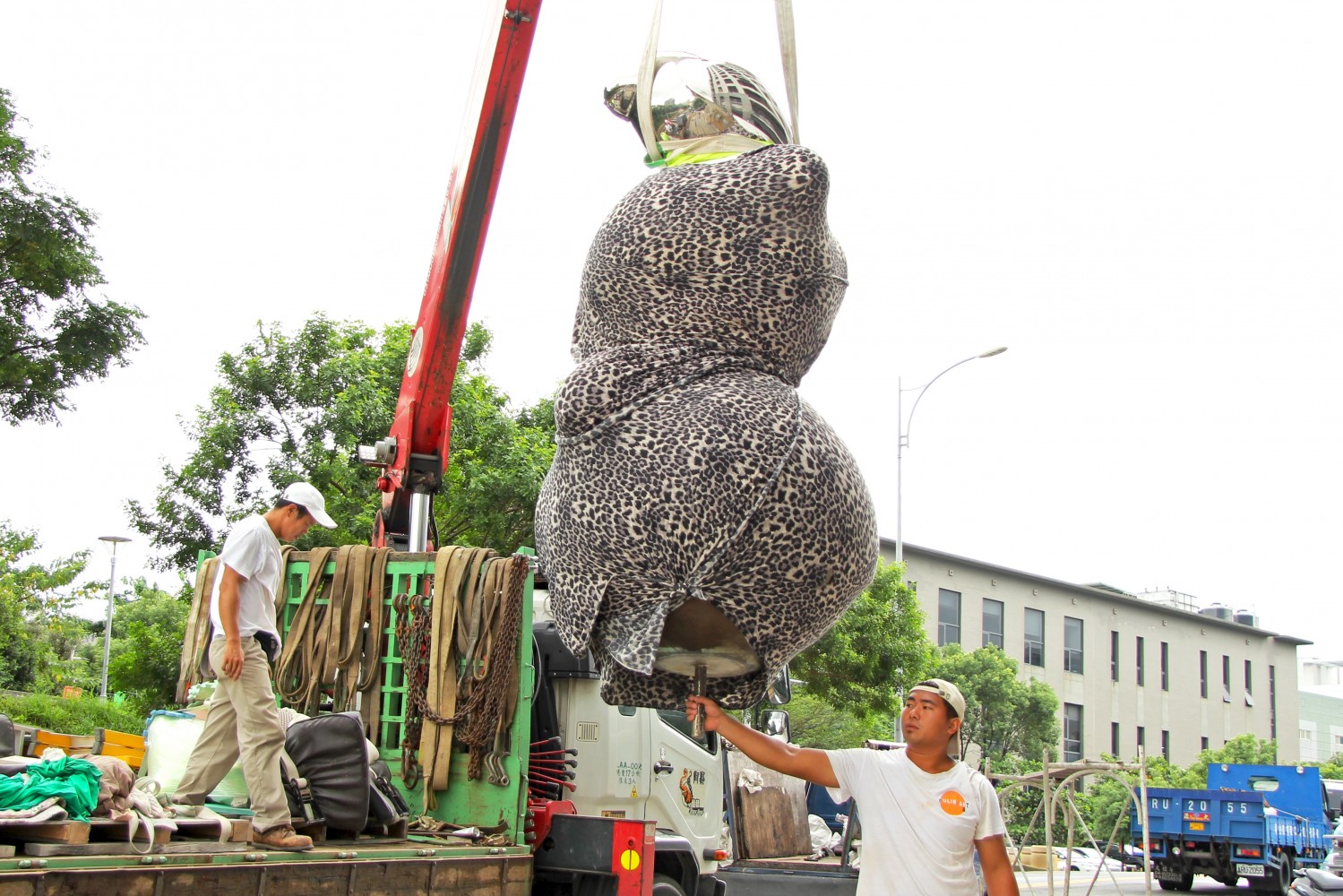 宜家公共藝術(shù)品-平凡的幸福/承擔(dān),出動(dòng)大型吊車(chē),準(zhǔn)備安裝定位。