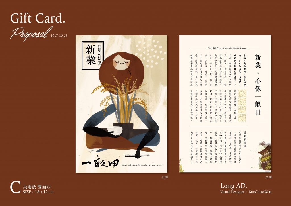 米粒隱含獨(dú)特芋香,微甜稍黏;溫潤(rùn)口感中帶有嚼勁,就像新業(yè)寬厚與溫柔中,是「禁得起的講究」;帶著稻草人般的憨直,起初親自插秧,而今能收割、分享粒粒飽滿、純淨(jìng)的心意。