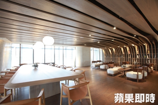 大廳的天花板也是「3D」的,在結(jié)構(gòu)體上做防水,並以碳化木塑形,才貼上馬賽克石磚,確保日後不變形腐壞。社區(qū)的影音廳也採圓形曲牆設(shè)計,2樓閱覽室、輕食區(qū)、頂樓健身房也很「厚工」,直的天花板更硬生旋轉(zhuǎn)90度,變成平的,營造出樹洞的空間體驗,連燈具、燈管都是曲型,「自然」得相當徹底。