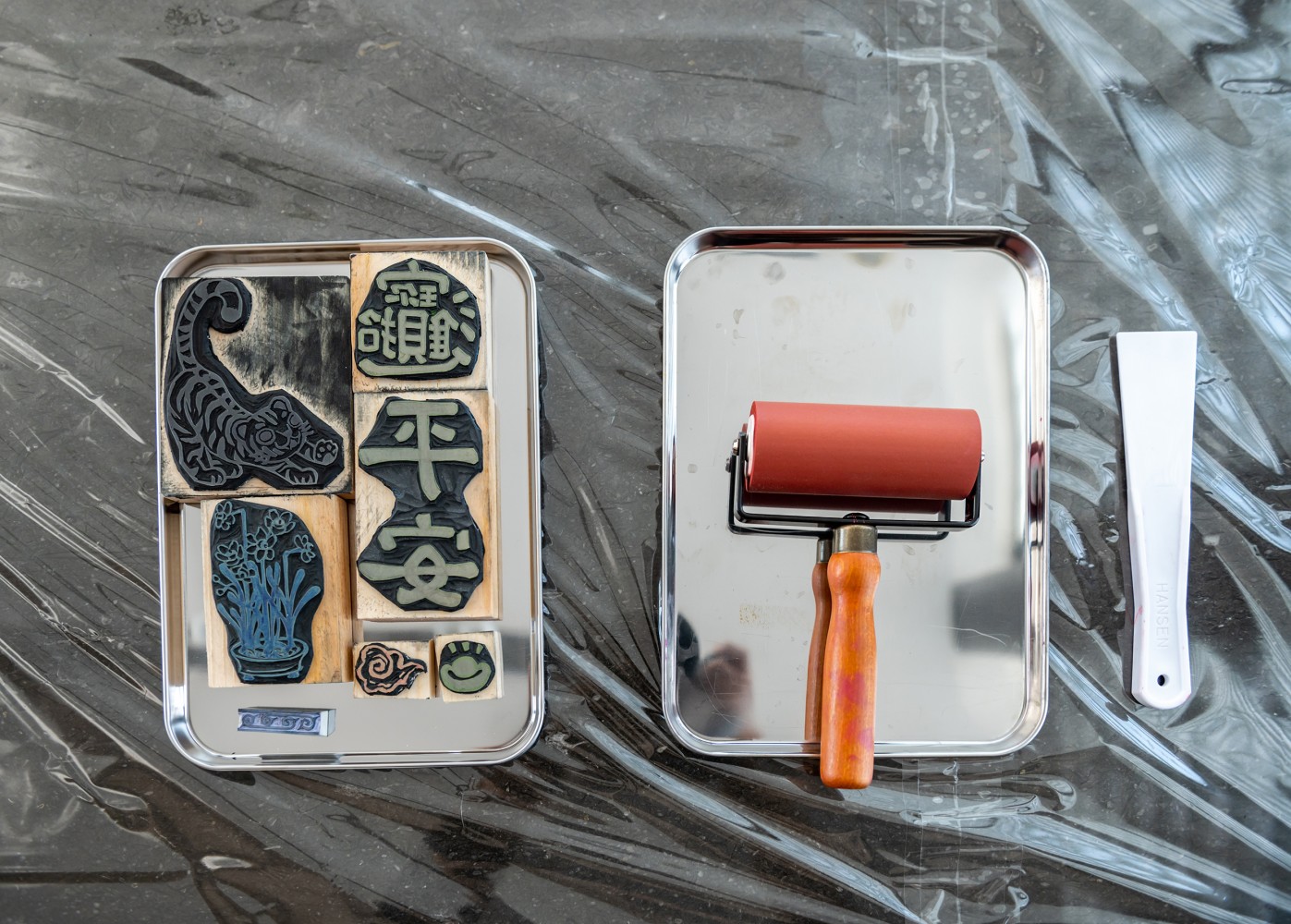 年節(jié)圖樣,恣意拼貼,動(dòng)動(dòng)滾筒均勻壓印,