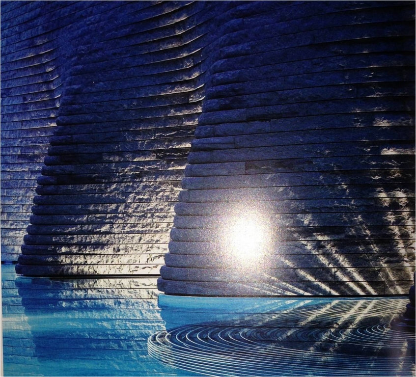 「新業(yè)觀峰」正對筏子溪河濱景觀,基地大幅退縮形成街廓步道,石村敏哉景觀設(shè)計師以卵石、天然石洗石子、花崗石三種弧形曲線鋪面,呼應(yīng)水岸住宅筏子溪水流的感覺。庭園鋪面是臺中大地的顏色,使用花崗石、花崗石亂張,搭配透水陶粒洗石子、陶磚、紅斑巖凸面等較自然的材料來做鋪面,?讓人們回到最原始自然的大地上自然詩意的棲居。